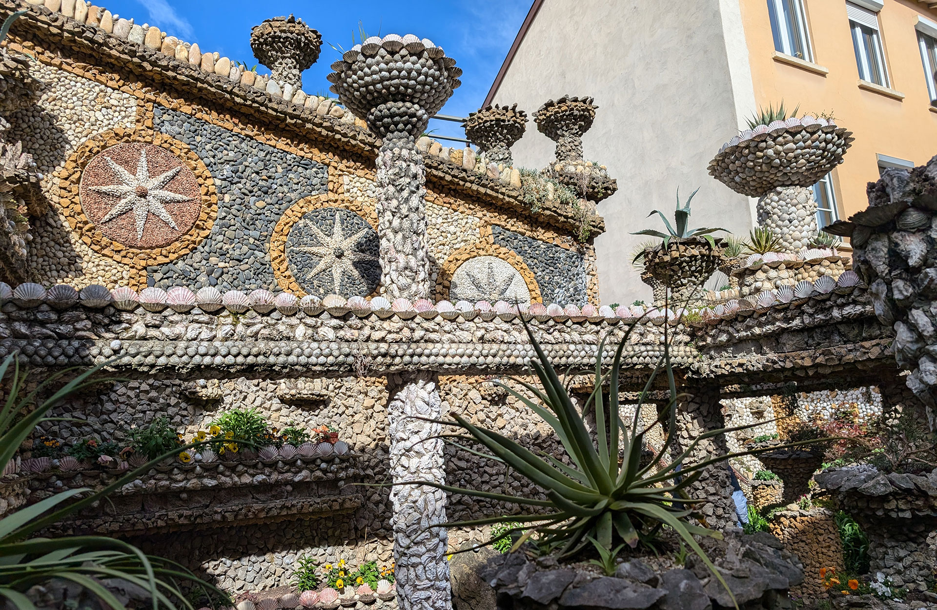 Un jardin extraordinaire bien caché dans la cour de l'un des immeubles de la grande rue de la Croix-Rousse. Réalisé pierre par pierre par les mains et l'imagination formidable de Jules Senis, artisan maçon, à la mémoire de sa mère Rosa Mir Mercader, ce jardin est incroyable : coquillages et pierres tapissent les colonnes et traverses tandis que les joubarbes et autres plantes vivaces s'épanouissent dans ce lieu qui rappelle Gaudi.