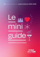 Découvrez "Le mini guide", un guide pratique et inspirant, pensé pour aider les visiteurs à saisir l’essence de Lyon en un clin d’œil. Édité deux fois par an, en français et en anglais, ce guide distille des "inspirations de saison" avec des événements immanquables, des bonnes adresses et des idées de sorties. À découvrir dans le Pavillon d'accueil ou en téléchargement en cliquant ici : Le mini guide Automne/Hiver 2025-2026