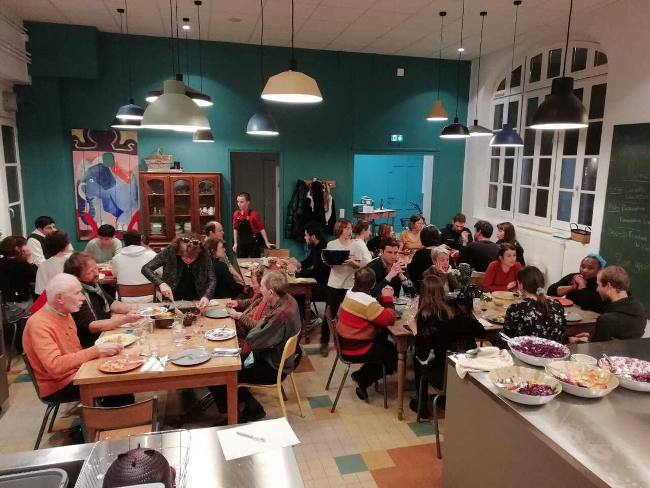Le repas est l’occasion de rencontrer des convives d’autres générations et parcours de vie. Tout est fait pour faciliter les échanges, se sentir relié aux autres, et renouer avec un sentiment d’utilité sociale. Tout le monde met la main à la pâte, de la préparation du repas, au ménage, en passant par la vaisselle.