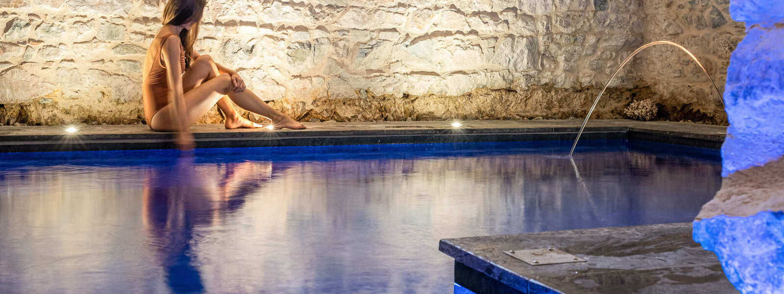 Implanté dans les anciennes caves voutées du château datant du Moyen-Âge, ce lieu uniquement privatisable est dédié au plaisir et au lâcher prise. Nager, se faire masser, boire, manger en duo ou avec des amis comme si vous étiez chez vous seuls au monde.