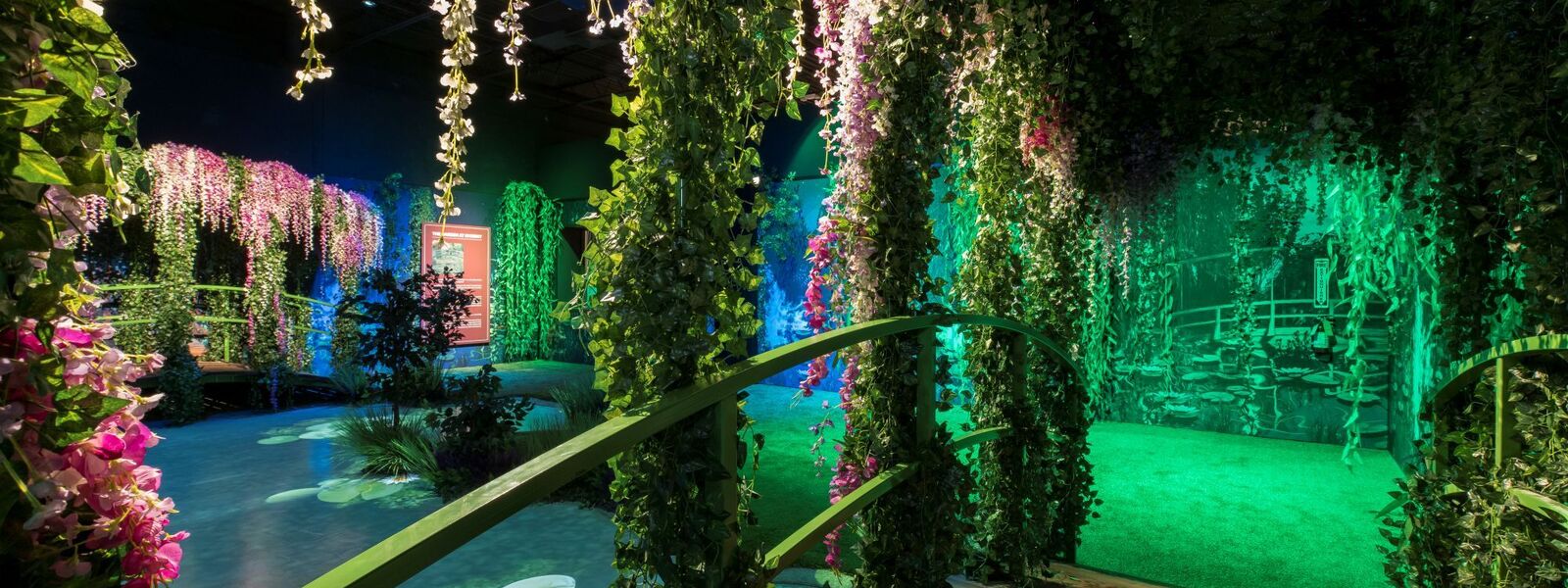 En prélude à l’expérience, vous êtes guidés sur un chemin retraçant la vie et les sources d’inspiration de Claude Monet. Ponctué de décors et d’installations artistiques, cet espace poétique est inspiré des jardins et du célèbre pont japonais de Giverny.