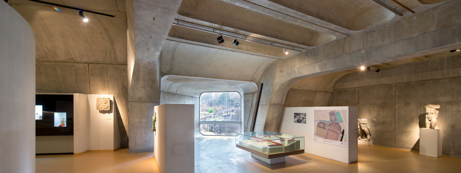 Labellisé patrimoine du 20e siècle, le musée se fond dans le paysage d'un site antique et unique.