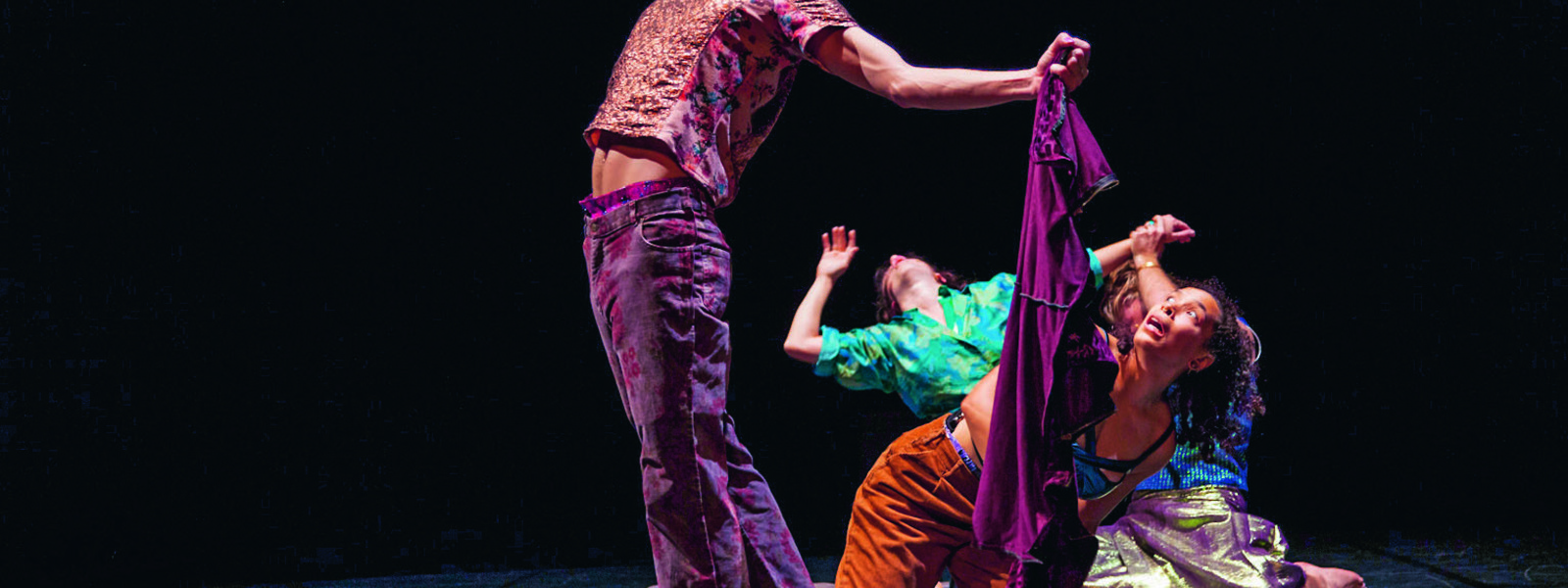 En gestes et en paroles, Arthur Perole fait jaillir les relations de quatre interprètes à leurs corps, oscillant entre partage intime et joie festive.