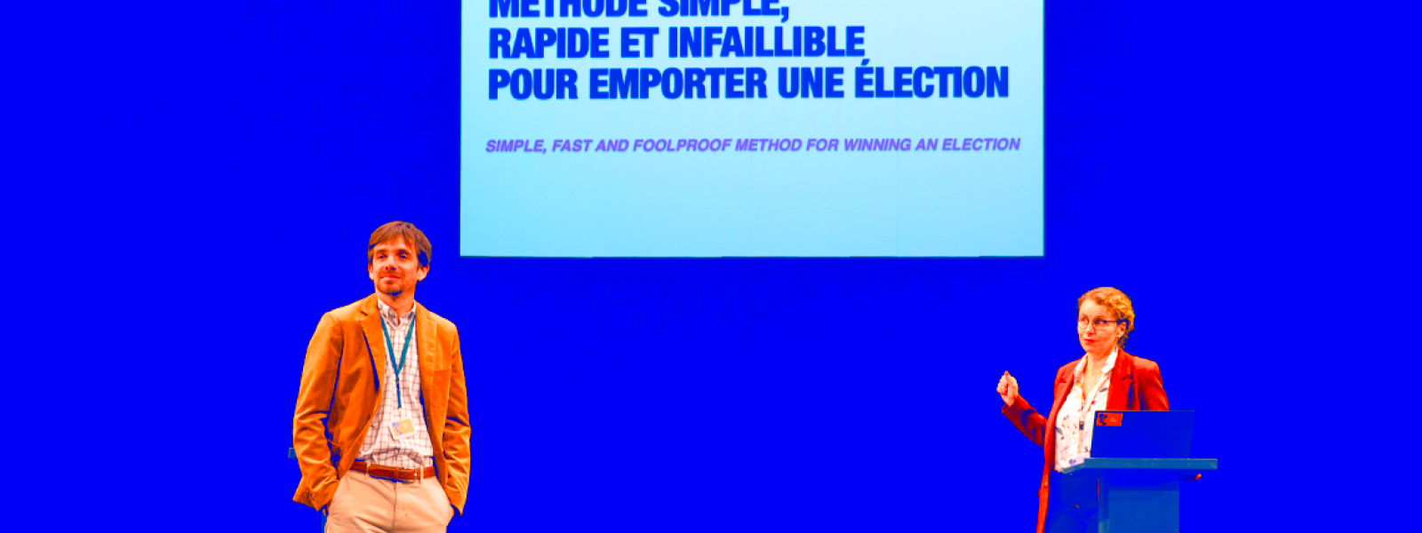 Dans ce spectacle truffé d’humour, deux « universitaires » présentent une méthode pour gagner n’importe quelle élection.