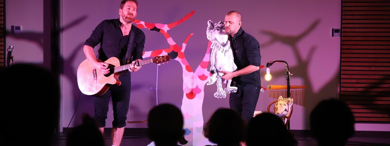 Guitares, bandjolélé et piano toy accompagnent Papa loup dans sa quête identitaire où les rires des enfants confirment que décidément, tout le monde adore avoir presque peur du grand méchant loup.