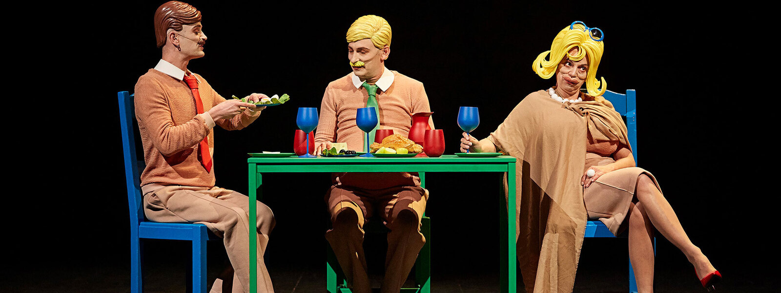 Valérie Lesort met en scène trois acteurs et actrices qui se métamorphosent à vue, comme les figurines pour enfants de Monsieur Patate. Elle s’appuie sur son habituelle équipe et sa solide expérience déjà à l’œuvre dans Les Sœurs Hilton, présenté en 2024 aux Célestins où elle est artiste associée. Hugo Bardin (Paloma) rejoint cette aventure. Tout comme Céline Milliat‑Baumgartner, David Migeot et Charly Voodoo, grand pianiste du cabaret de Madame Arthur qui ponctue le spectacle de chansons originales grinçantes et émouvantes.