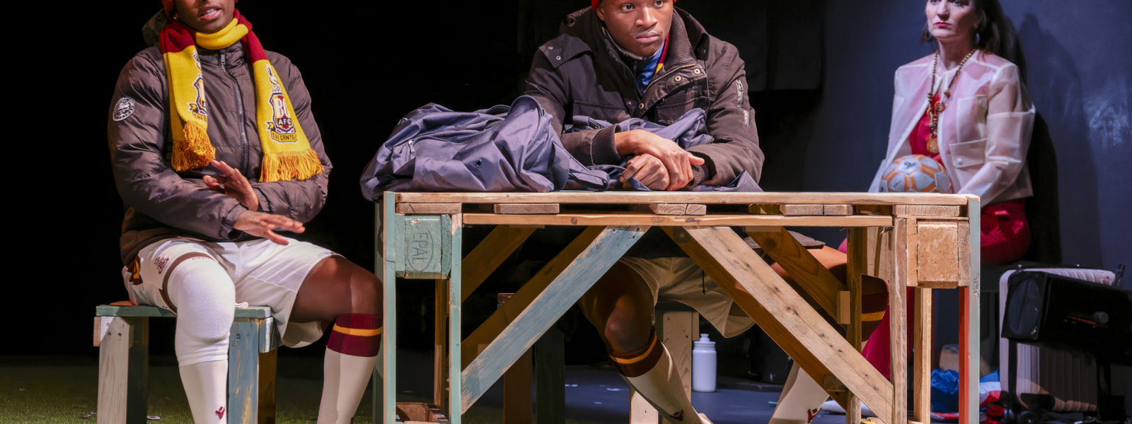 Kouam et Mafany rêvent foot, Angleterre et gloire. Mais derrière l’amitié et les promesses, la pièce révèle racisme, désillusions et espoirs fragiles. Trois minutes pour tout changer.
