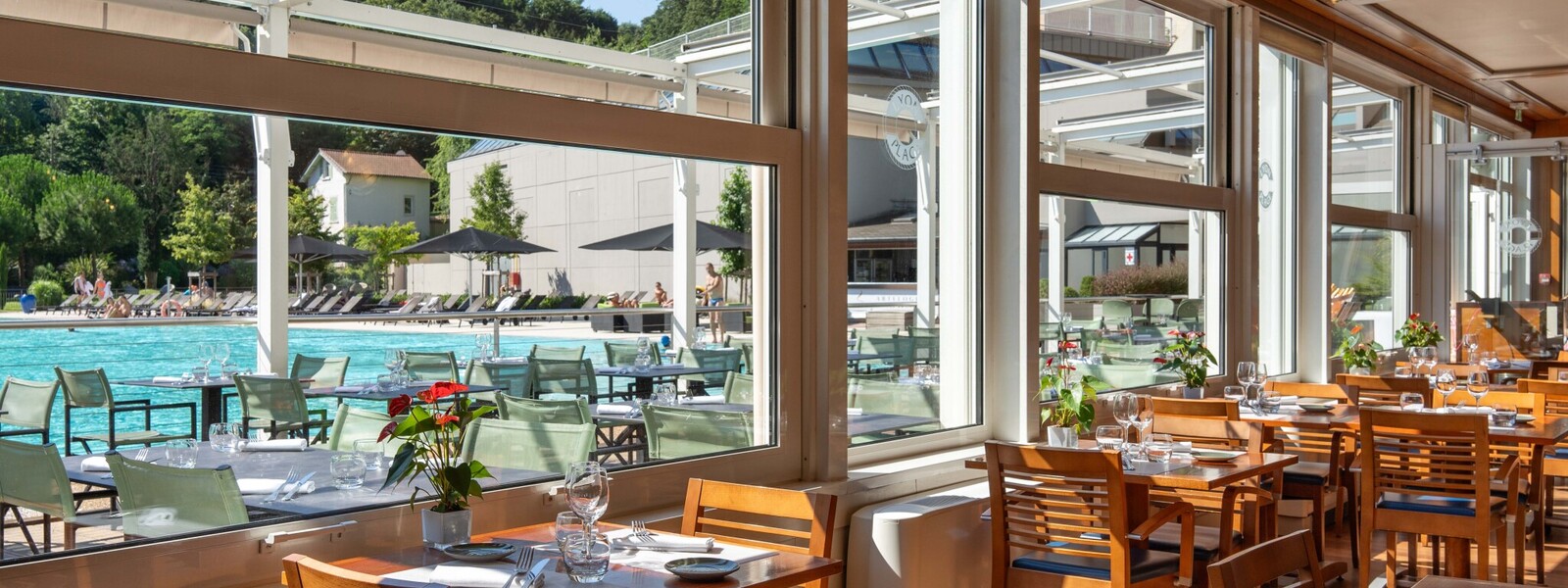 Aux beaux jours, profitez de l’ambiance exceptionnelle de la terrasse en bord de piscine olympique !
